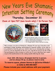 What are you doing for New Year’s Eve. We’d love to have you join us in person or by zoom to chant and drum in your highest intentions for 2025 with our annual NEW YEARS EVE SHAMANIC INTENTION SETTING CEREMONY in person or by zoom with Dr. Elder Patrick J. Harbula & Corina Harbula.